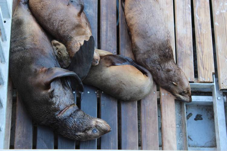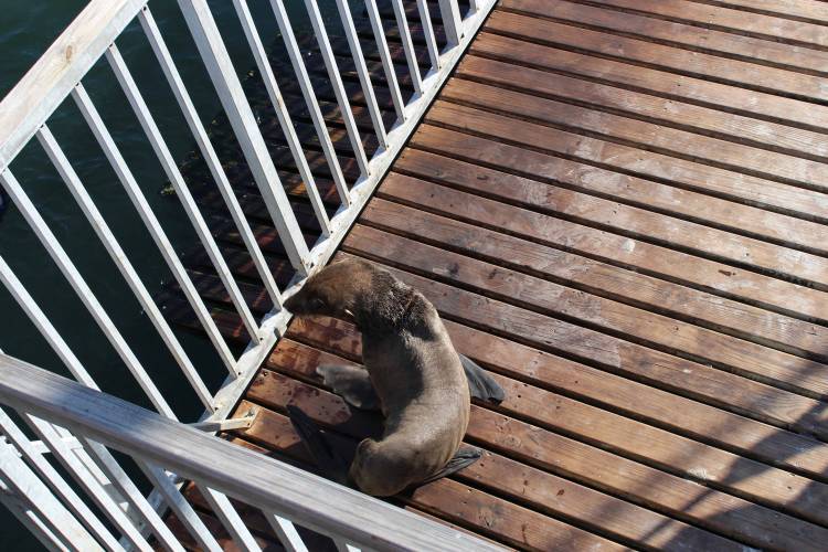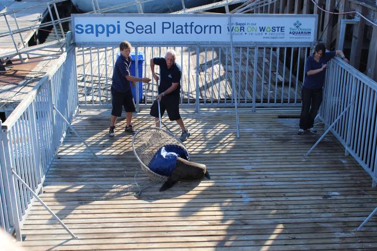 Last week, Dr Pat Garratt, Director of the Aquarium, alerted me to the fact that the SAPPI Seal Platform outside the Aquarium was groaning under the weight of juvenile seals.