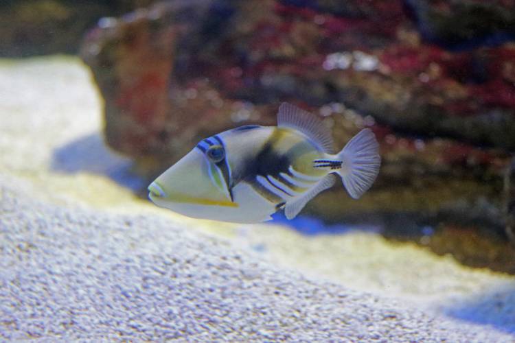 The Picasso triggerfish (Rhinecanthus aculeatus) must truly have one of the most remarkable patterns in nature to be named after such a prestigious artist. It is a fish with an adorable softer side, lying on its side to sleep at night. But, don't be fooled - it will even try to fight a scuba diver to protect its babies.