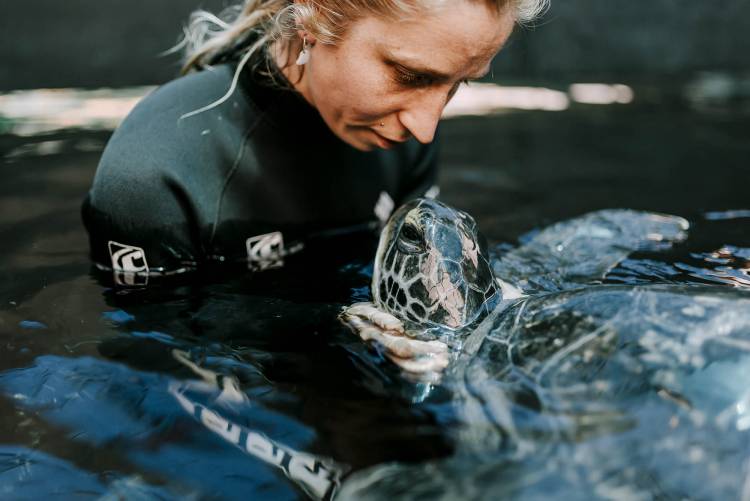 Alexandra Panagiotou is the Sea Turtle Enrichment Specialist at Two Oceans Aquarium Education Foundation, and is currently pursuing her PhD at UCT on the effectiveness of environmental enrichment on sea turtle recovery. Enrichment is a process intended to stimulate animals to maintain their wild instincts, behaviours and curiosity, and Alex has been using these methods to rewild Bob, a green sea turtle previously believed to be unreleasable, but now a candidate for rewilding.