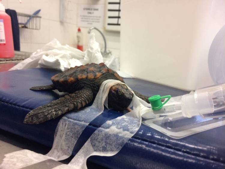 More often than not, the stranded hatchlings we rescue come to us with severe injuries or illness. Jack Sparrow #33 is a tiny loggerhead hatchling that washed up on a beach during the severe storms in June.