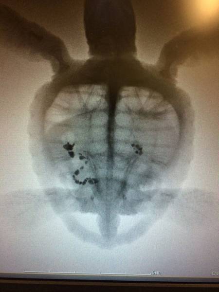 "Due to the turtle's age and size it was decided that exploratory surgery was unwise and would most likely result in the turtle's death. Thus we elected to give the little one a chance with supportive general therapy, immune support and a safe, clean environment to live in in the hope that if there was some foreign material causing impairment of intestinal function, it would be able to pass through on its own."