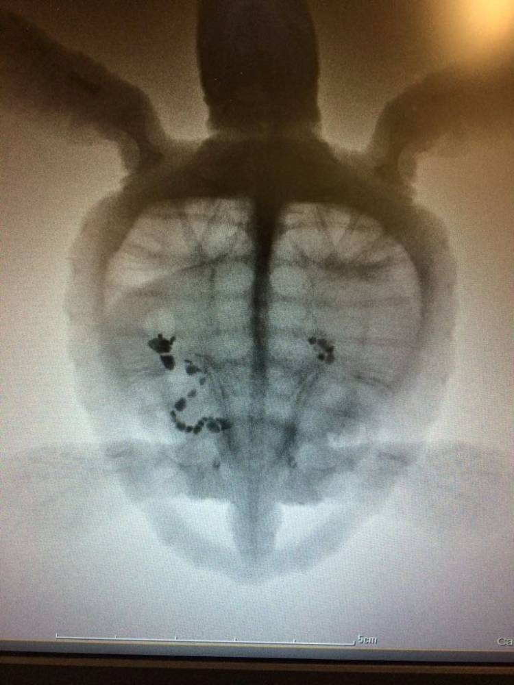 We believe that the cause of these internal injuries may have been a piece of plastic he ate while still adrift.