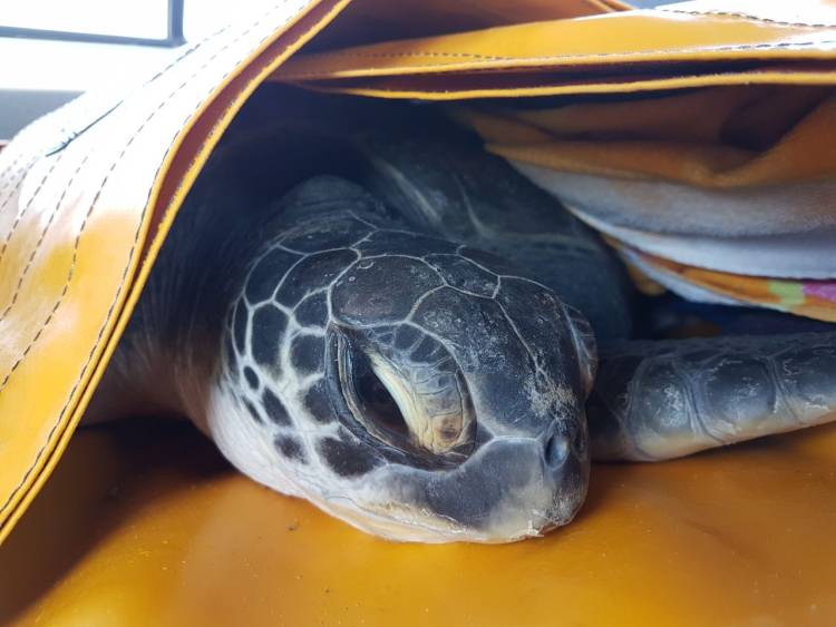 Moya has recovered well since his rescue at Cola Beach in October. The large wound on Moya's flipper is healing well, and we are optimistic that there should not be any permanent damage. He has become a very curious turtle, always coming to the edge of the enclosure say hi when someone walks past. Moya is an active feeder and has become very good at pulling white mussels out of the shell and responds well to the feeding target.