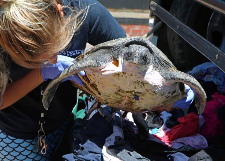 Newcomer Koda is doing very well after being rescued at Eskom Koeberg Nature Reserve on 31 January 2018. Koda arrived at the Aquarium covered in goose barnacles. This particular barnacle species, Lepas testudinata, is often attached to floating plastic debris, and it has been suggested that Koda may be the first turtle recorded with them attached.