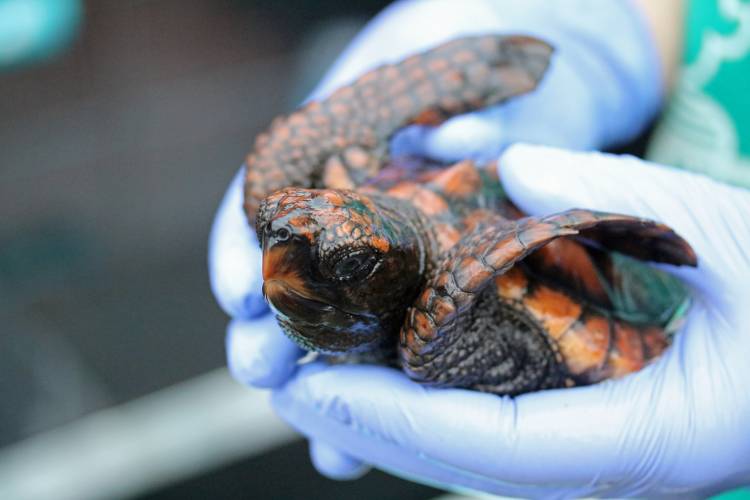 - DO NOT PUT IT BACK IN THE WATER! Rather put the hatchling in a small, dry container with air holes and something soft to rest on.