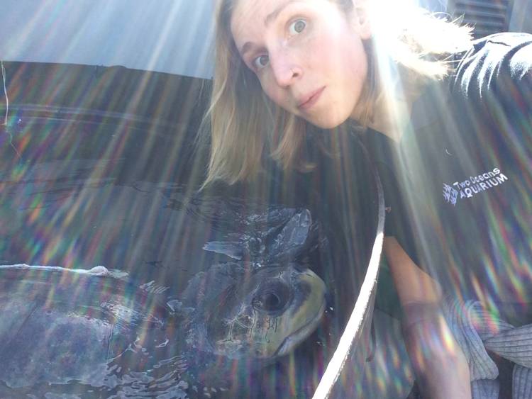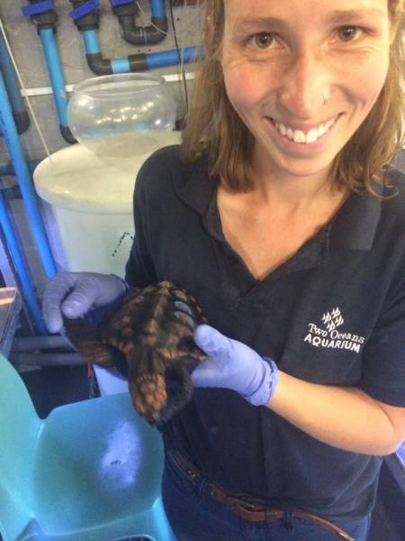 Talitha Noble works at the Two Oceans Aquarium's turtle rehab-and-release facility.