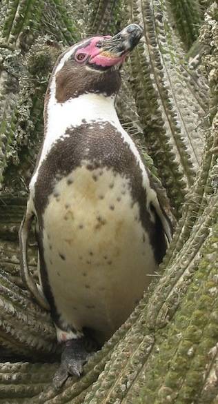 In the case of the African and Humboldt penguins, the most distinguishing feature between the two species is the bill. Humboldts have slightly bigger bills with fewer feathers around them, thus exposing a much larger area of bare skin around the bill than do African penguins. Although I tried hard to see the difference, it was only when Antje sent me these pictures that I could see the obvious!