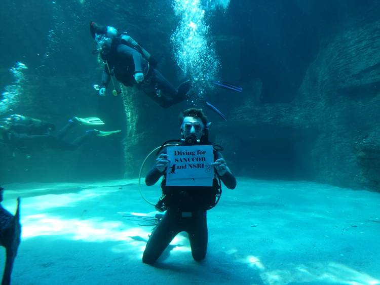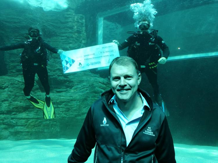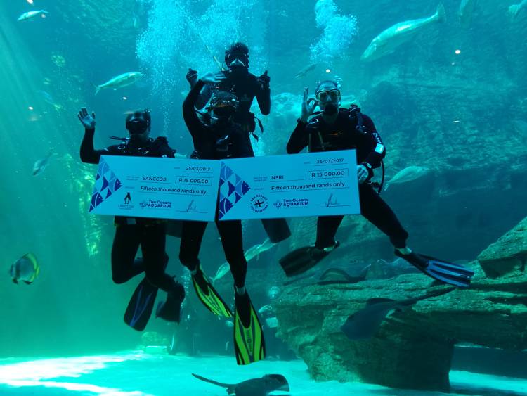 As long-standing friends and partners of ours, we always want to show our appreciation to both the NSRI and SANCCOB for the incredible services they render to citizens and animals of the City of Cape Town, and beyond. The handover was done underwater in the I&J Ocean Exhibit, with divers representing all three parties. We donated R15 000 each to the NSRI and SANCCOB.