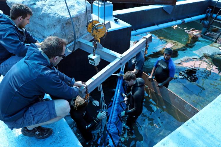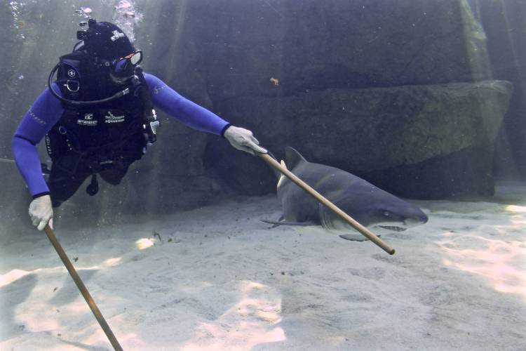 These sharks were introduced to the Aquarium’s Predator Exhibit in late-July and now, after about two months with us, we have decided to release them. Male sharks are known to be more inquisitive, and these two are more dominant in the exhibit and have tended to get a little too close to our divers for comfort.