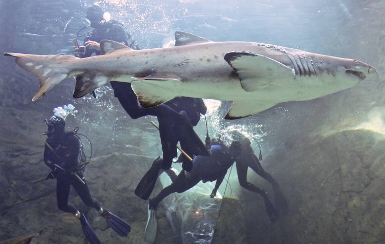 The two sharks being released will be tagged so that they can contribute to important ragged-tooth shark research studies. You can still come and get an eyeful of the seven remaining ragged-tooth sharks at the Aquarium! Feeding time is every Sunday at 3pm.