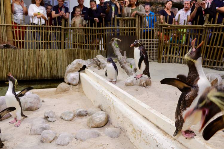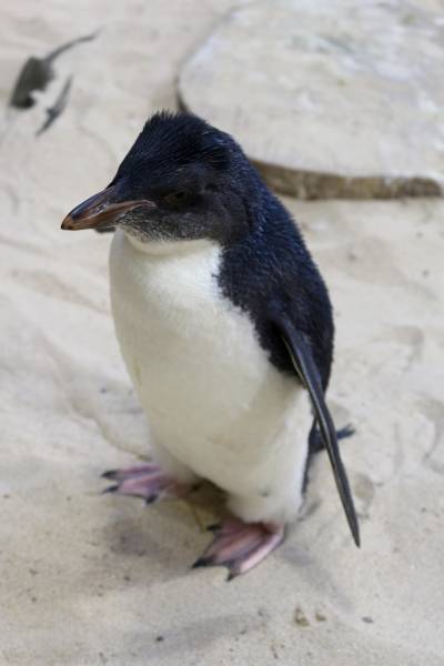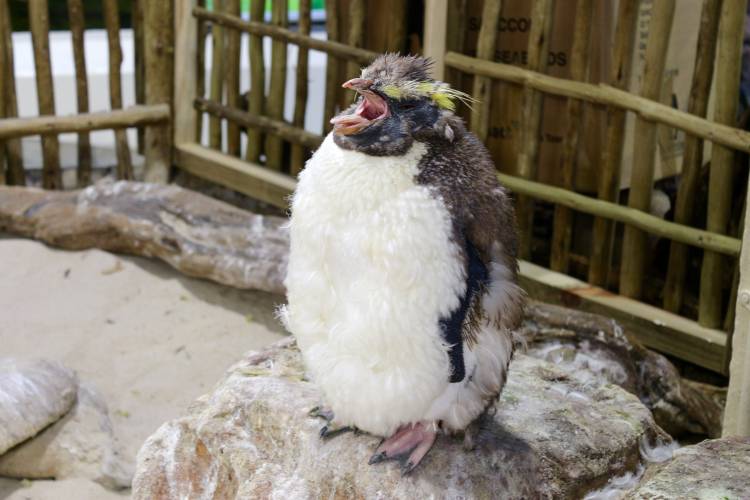 Miss Custard (now almost four months old) has now joined the rockhopper colony in the Penguin Exhibit, brought to you by Old Mutual Finance, at the Aquarium. The rockhopper penguins in this exhibit were found stranded on southern Cape beaches, rescued and then rehabilitated by SANCCOB before being donated to the Aquarium. They cannot be released due to the risk of introducing possible foreign pathogens into wild populations.