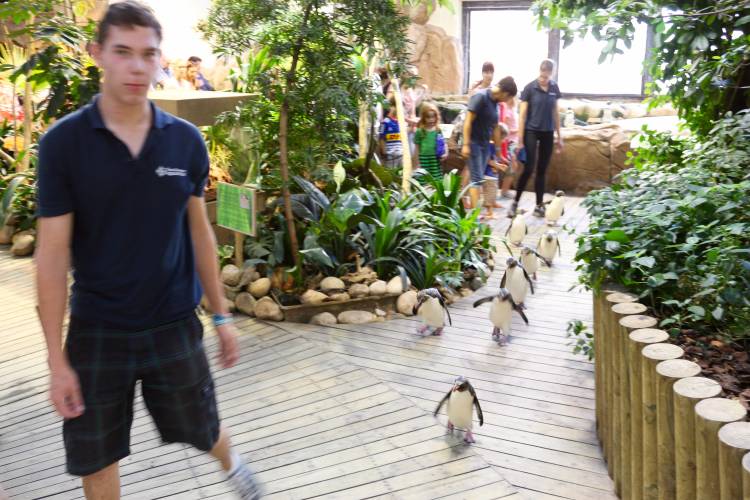 Miss Harold Custard, as the chick has been named, is the second of Roxy and Grommet’s chicks, with Clax, also female, having hatched at the Aquarium in October 2014.
