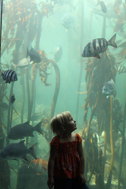 Our journey takes us next to the Kelp Forest Exhibit. One of only 3 in the world, this impressive exhibit holds 800 000 litres of water, a myriad of local fish species (including our national fish, the Galjoen) and tall, lanky kelp plants. Like elegant ballroom dancers, the kelp plants sway back and forth in the surge. Their movement creates a hypnotic and mesmerising scene that leaves one with a sense of calm and tranquility. Watch a diver feed the fish on Wednesdays and Sundays at 12:00.