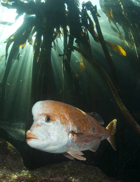 It’s important to use the opportunities presented on a dive. I found the red stumpnose the most curious of the fish species in the Kelp Forest, and it peered into the lens. I was able to find a spot with beautiful kelp as a background and waited for a red stump to come have a look and provide a foreground subject.