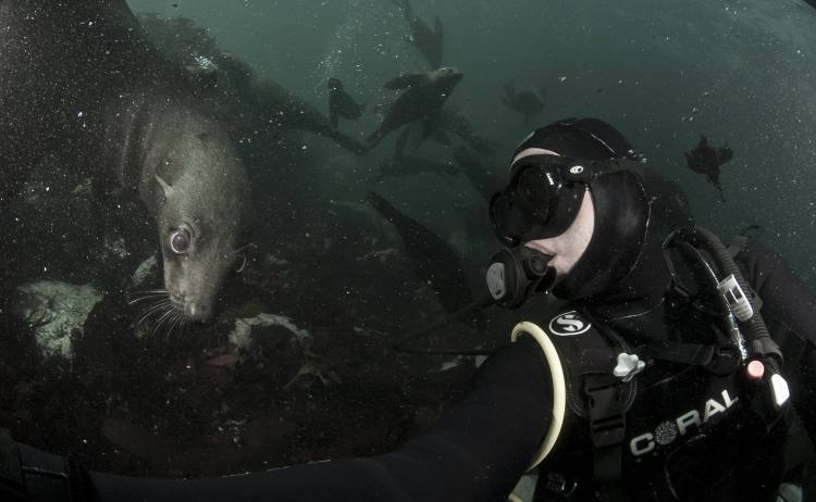 My work with the seals has always involved tourism and filmmaking. I'm a zoologist and I went into tourism early on, and we were doing all kinds of activities - kelp forest dives, blue and mako shark dives, reef diving - but it was really the seals that captured all my guests' and photographer friends' hearts.