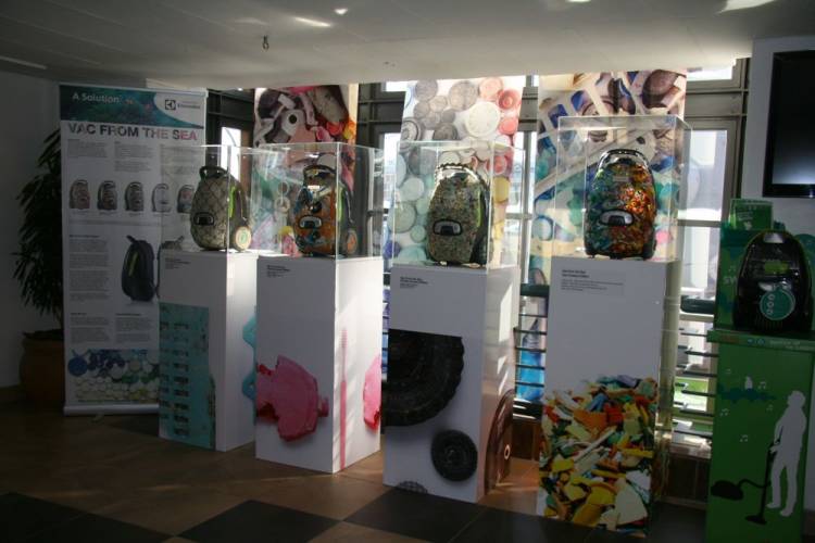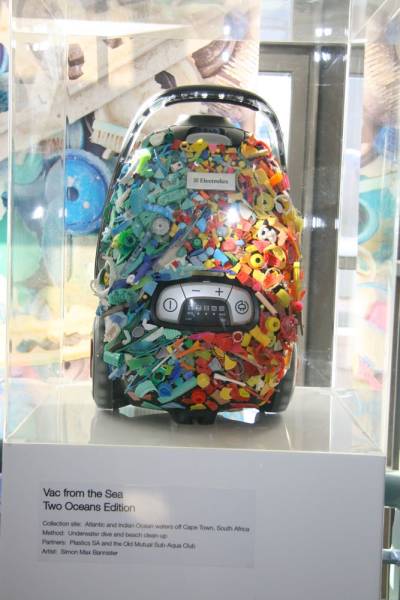 Local artist and originator of Plastikos, Simon Max Bannister, partnered with Electrolux on its Vacs from the Sea maritime conservation initiative and created an artwork using an eco-friendly vacuum cleaner as his canvas and incorporating recycled plastic gathered from beach clean-ups that took place at Muizenberg and Hout Bay in September 2011.
