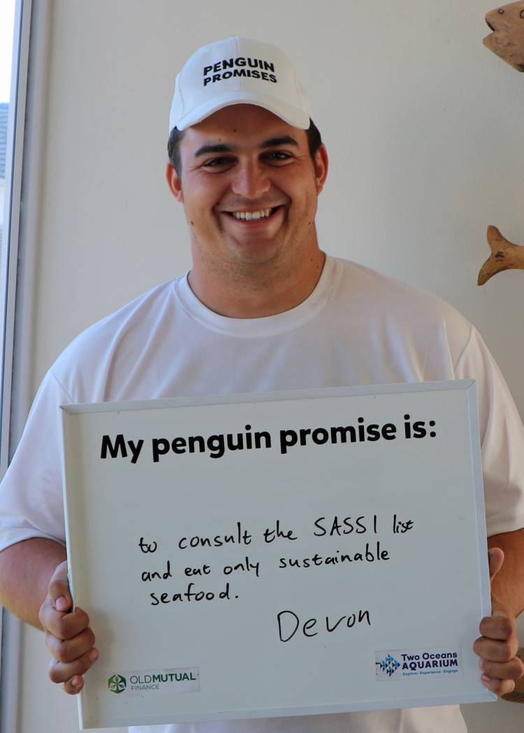 "Hi I'm Devon and my Penguin Promise is to consult the SASSI List and ensure I eat only sustainable seafood."