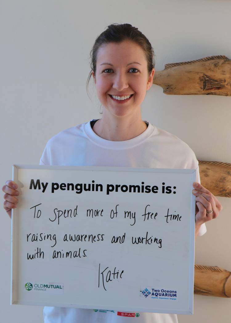 "Hi, my name's Katie and my Penguin Promise is to spend more of my free time raising awareness and working with animals to help protect our environment."