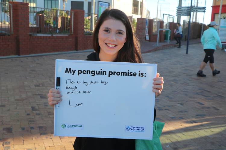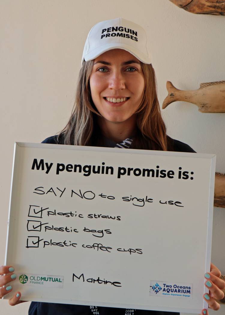 "Hi my name is Martine and my Penguin Promise is to continue saying no to single-use plastic straws and plastic bags and to start saying no to plastic coffee cups."