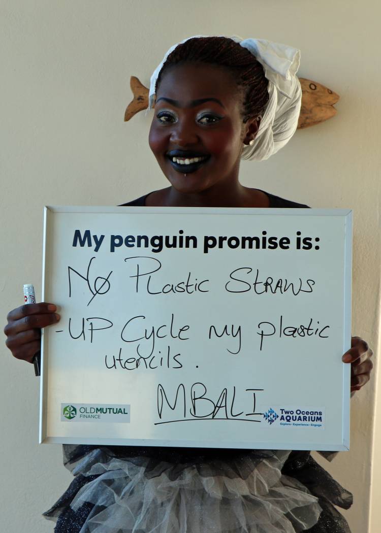 "Hi, my name is Mbali and my promise is never to use plastic straws and to up-cycle all my plastic forks, spoons and knives."
