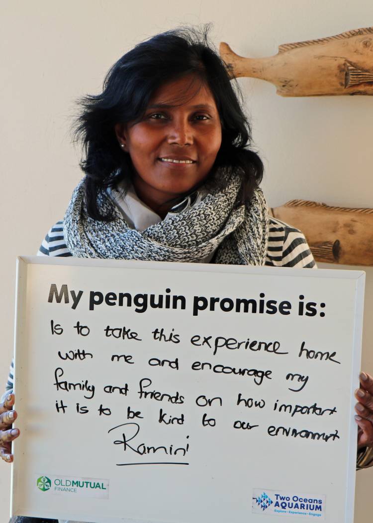 "Hi, my name's Ramini and my Penguin Promise is to take this expereince home with me and to encourage my family and friends to be good to the environment."