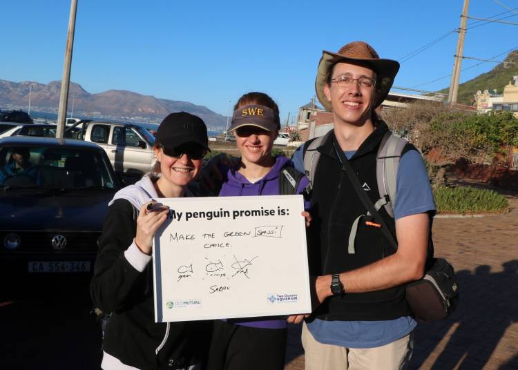 From 8 to 13 May 2017, 16 committed penguin lovers walked more than 130km from Gansbaai to Boulders Beach, Simon's Town. What was the goal of this meander? To raise awareness for the plight of the endangered African penguin. We hoped to inspire and encourage those we encountered along the way to make a "Penguin Promise" - a small lifestyle change that will make a big positive impact on the state of our oceans. Penguins are an indicator species, meaning that their decline is a result of damage to the entire ecosystem and that making changes that are good for penguins will be good for other animals too, including humans. This was the seventh annual Penguin Promises Waddle for a Week campaign, supported by the Two Oceans Aquarium and the South African Association for Marine Biological Research (SAAMBR).