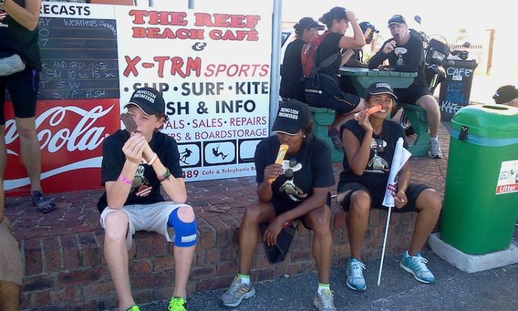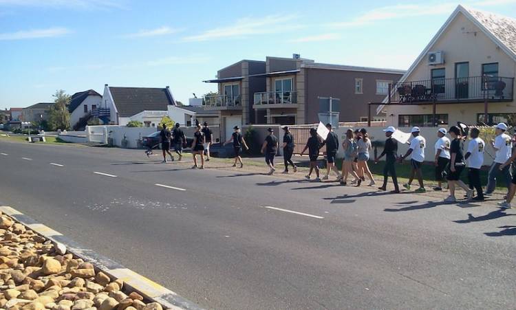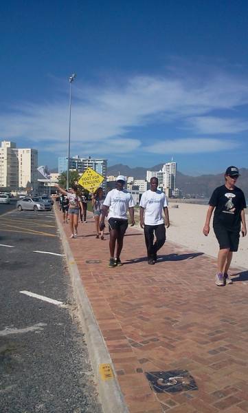 The waddlers set off at 10am on day five, a welcome change to our usual early mornings. With everyone ready, we set off through Gordon’s Bay, hoping to get as many hoots as possible. Day five was a short walk (only 11km), and the team made it to the Gordon’s Bay main road in no time.