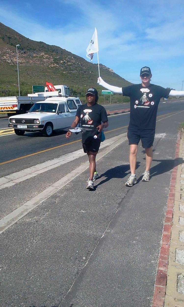 The waddlers made their way out of town in no time. We were again joined by about 15 Cape Nature staff for the day. Cape Nature is our main sponsor and it was great to have so many of them walking with us for the whole 24km.