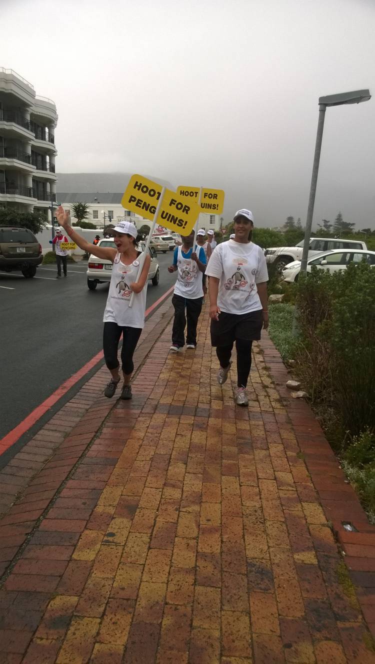 Our Waddlers finally arrived at the Whale Tale in Hermanus, exhausted but still smiling. Tomorrow we will be tackling another 24km from Hermanus to Kleinmond. In my experience, this has usually been the hardest day for most Waddlers, mainly because their muscles are screaming by now. So show your support, hoot and make a Penguin Promise!
