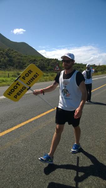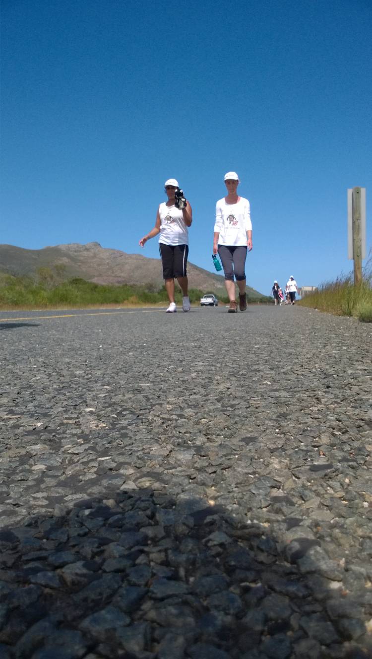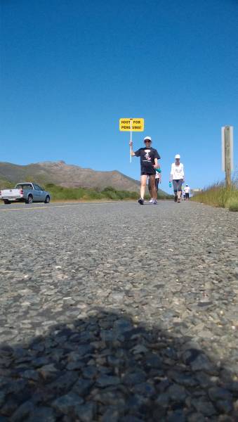 Day 3 of the Waddle for a Week campaign was great, but you can definitely see that our Waddlers are suffering from sore muscles and blisters. Even in previous years, the third day has always been the hardest, probably due to a combination of tired bodies, sore toes and feet and roads that are just everlasting. The stretch between Hermanus and Kleinmond is mostly open road, so as a Waddler it can become a bit monotonous. Sonia Peck, one of our penguin keepers at the Two Oceans Aquarium, has a good method of soldiering on: keep your head down and look at the road.