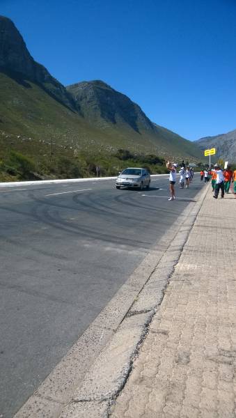 We were very happy to see Cape Nature and the municipality turn up with reinforcements. They added about 16 people to our numbers, making us a very visible crowd on the road. Thank you for the support and walking the whole 30km with us.