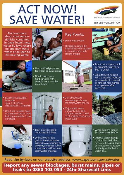 The City of Cape Town announced a number of water by-laws in 2010. There have been some recent additions, but these are the most important things to know about the by-laws, and how they affect you: