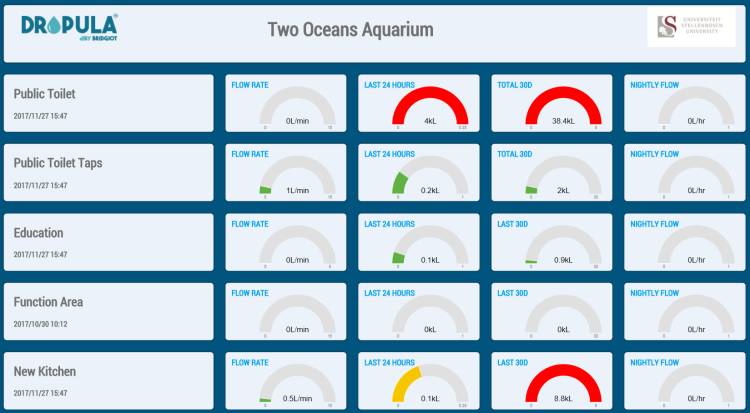 The University of Stellenbosch has designed an online Dropula dashboard for us, which allows our water consumption data to be viewed in real-time - we plan on displaying this information publicly in our foyer.