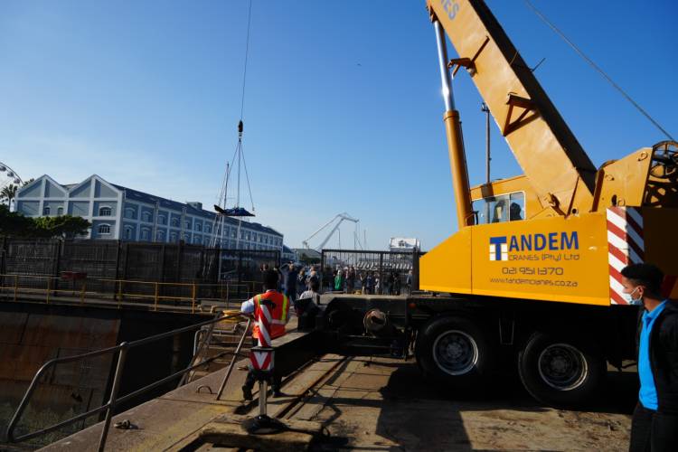 The Two Oceans Aquarium rescued a large sunfish from the Robinson Dry Dock in the V&A Waterfront yesterday afternoon. The fish had become trapped in the dock as the water was being drained out of it and had to be airlifted out via a crane.