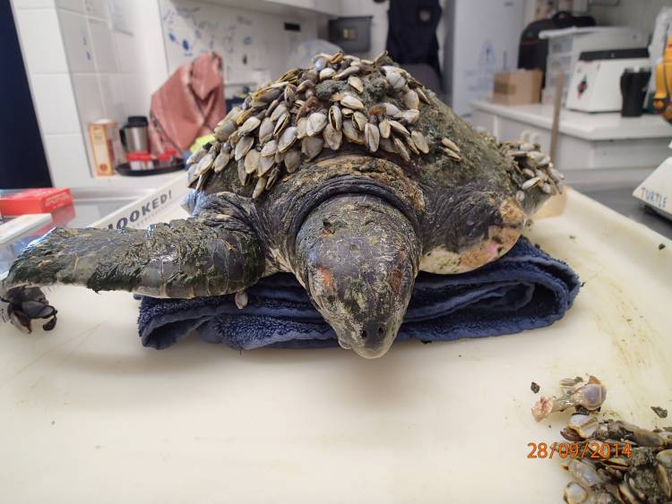 On arrival, each turtle receives a freshwater bath to help with rehydration, and to remove algae and other organisms from its shell (carapace). The turtle also undergoes a veterinary examination and, if necessary, immediate first aid and medication. If the turtle shows no visible signs of injury and seems strong, it is placed in a holding tank where it is closely monitored. Each turtle is handled on an individual basis, therefore examined, treated, weighed and fed, one by one. The weaker turtles are checked daily. In some cases, where the turtles are unable to maintain their buoyancy and are at risk of drowning, they are fitted with neoprene jackets to ensure that they can float and breathe easily at the surface.