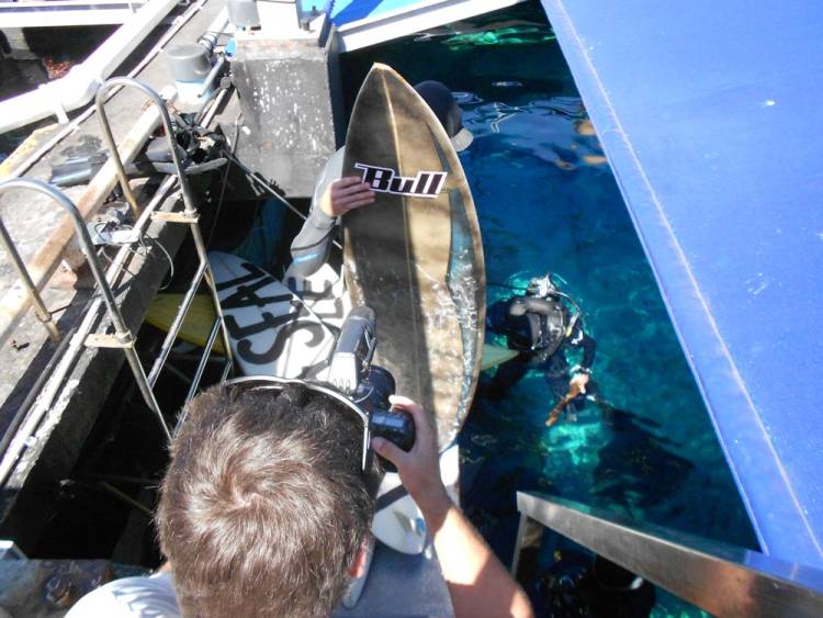 On Monday 26 March 2012, Conn Bertish took a dip in the Two Oceans Aquarium’s I&J Predator Exhibit. People take the plunge here all the time, but this time it was different; Conn wasn’t wearing flippers, goggles, weights or scuba equipment. Instead, he paddled out on a surfboard. Why? To help people rethink the shark.