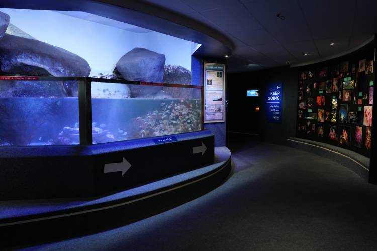 Once you've soaked up the beauty that is the Indian Ocean Gallery, you'll then make your way through the double doors, into the Atlantic Ocean Gallery. The Atlantic Ocean Gallery is home to a large abundance of fish and many different invertebrates. Amongst the species in this gallery, you'll find seahorses, little rays, and a John Dory, to name a few. This gallery is also where you'll find our octopus, which is often hard to spot, as it spends most of the time hidden in its rock structure. It's definitely there though, we promise!