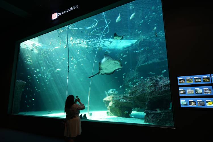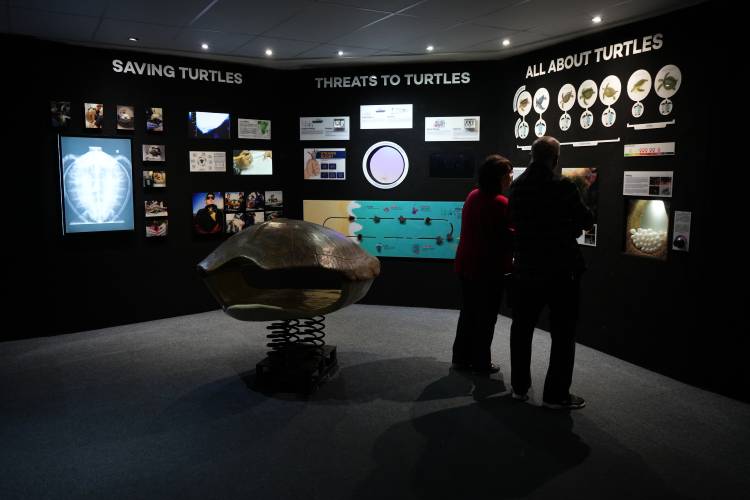 As you exit the tunnel, you’ll pass an extension of the Atlantic Ocean Gallery, where you can find an array of interesting and diverse species, and learn some interesting things about some of them. Here, you'll also find our Turtle Wall. This section aims to educate and inform visitors about the dangers turtles face and ways we can all contribute to their well-being.