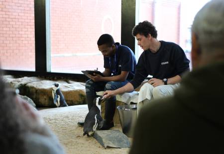 So, we hear you asking, "Where does the ramp lead?" Well, dear friend, the ramp leads to another one of our fan-favourites, the Penguin Exhibit. The Penguin Exhibit is home to both African penguins, as well as rockhopper penguins. Our penguin feeds are wildly popular, which often means a packed exhibit. If you're lucky, you'll get to see the penguin waddle, which happens after the rockhopper penguins come from their morning swim.