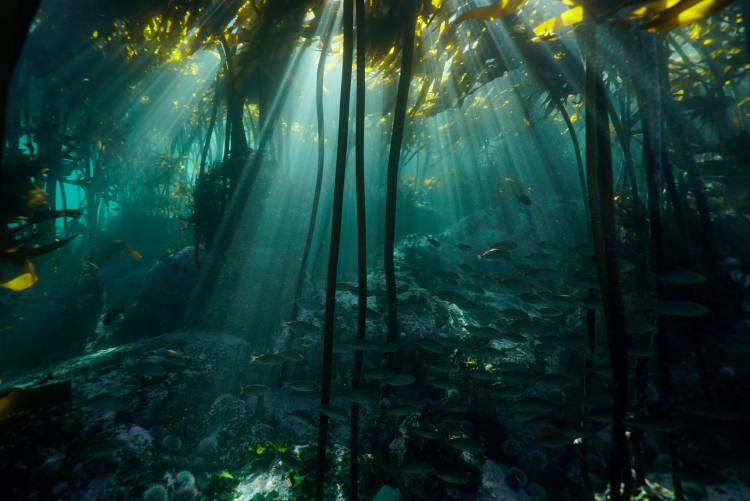 The kelp is a near-shore ecosystem, extending from the fringes of the intertidal zones, or the rock pools that fill and ebb as the tides wax and wane, to not more than 3km out to the ocean. The bulk of their spread is within a few hundred metres. With a top canopy of ribbon-like fronds that floats on the surface, long stipes that rise and prostate kelp that spreads at the bottom, these forests provide a safe habitat for thousands of animals and smaller seaweeds. They are also a nursery and a haven for baby animals. Inside this forest, under the water, is a magic kingdom of wonderous creatures whose lives are as dramatic and as dynamic as any of our own. It's not just a kelp forest but The Great African Seaforest.