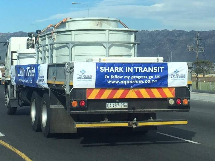 The truck and tank are fitted with life support systems that maintain water quality during the journey to Mossel Bay, and overnight. Then, the next morning, the sharks are transported to the harbour, transferred to a boat and taken out to an offshore reef for release.
