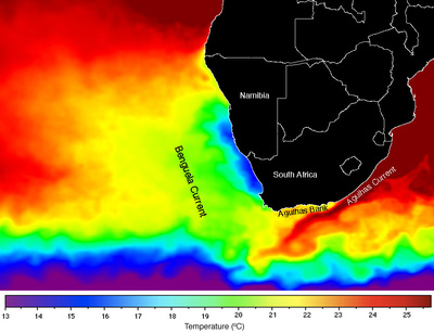 She is about 85km northwest of the Olifantsriver mouth, with water temperature closer to 17°C now. If she continues in a northwesterly direction she will quickly get to warmer 19°C water.