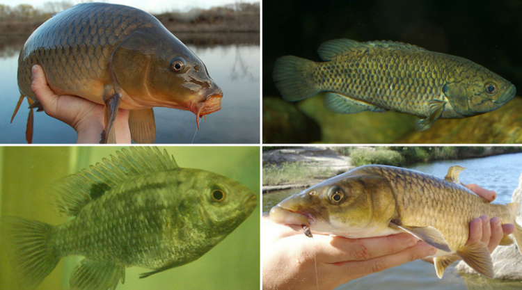 The common carp (Cyprinus carpio) is an invasive alien species, originally native to Europe and Asia, introduced into many South African waterways. Moggel, kurper and banded tilapia are all indigenous to South African waterways.