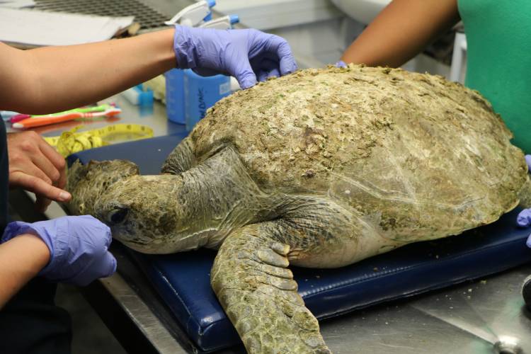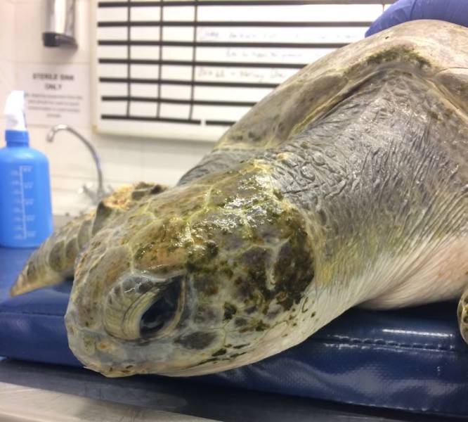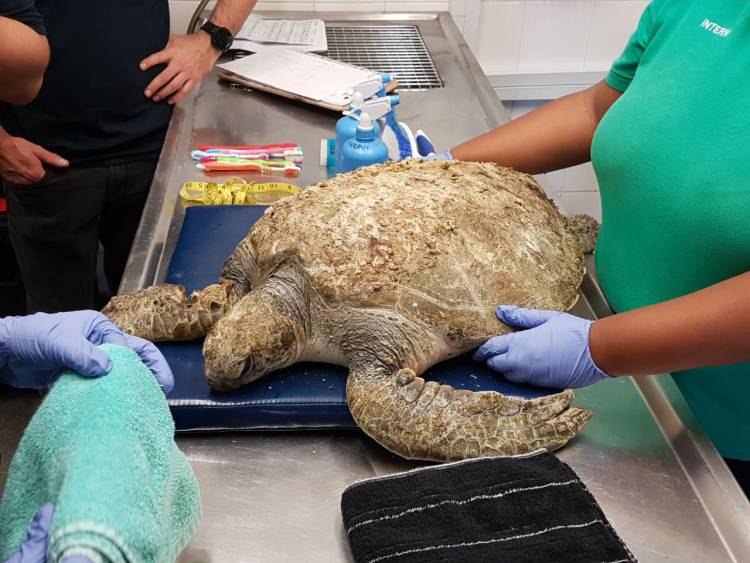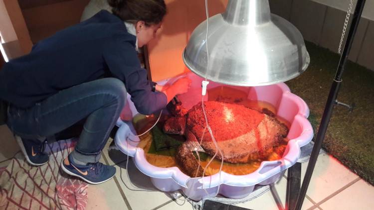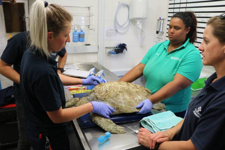 Upon arrival in Cape Town, Two Oceans Aquarium staff quickly collected the turtle and brought it directly to the Aquarium's veterinary clinic, for an inspection of its wounds to ensure no further harm was done during the flight. When we were confident that 17/213's condition was stable, it was time to begin the slow process to recovery.