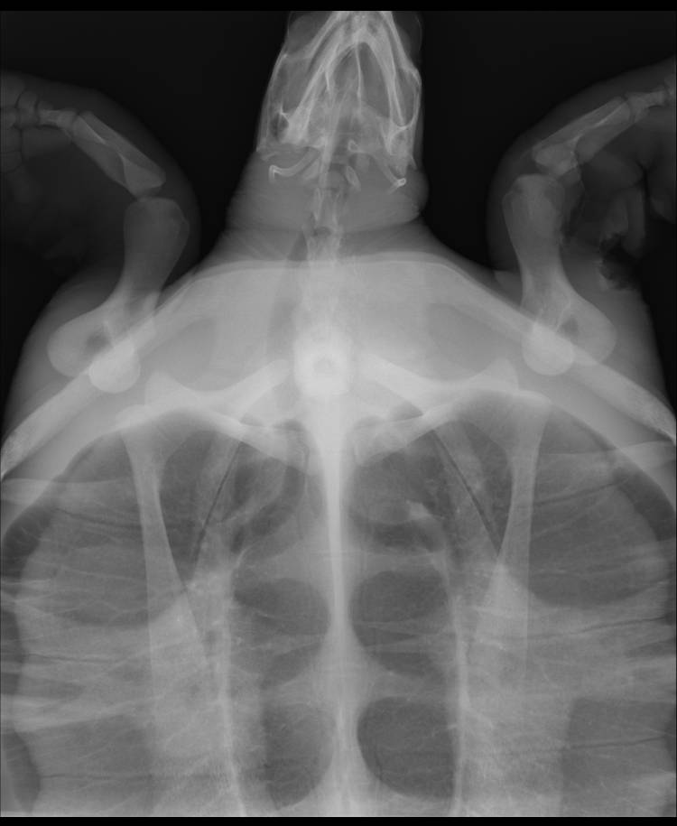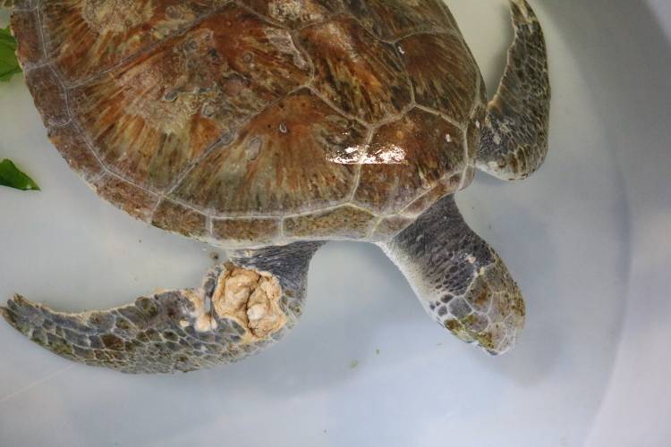 X-rays of the turtle's injured flipper revealed that despite the wound looking serious, there were no breaks (a good thing as this often requires the flipper to be amputated). We were able to clean the wound and will ensure that it is allowed to heal naturally. The turtle is currently on a course of antibiotics to cure any undetected infection.