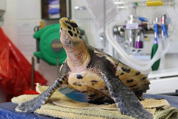 Turtle rehabilitation requires specialist work. Our resident vet Dr Georgina Cole and our turtle rescue team members Kevin Spiby and Nicholas Nicolle ensure that turtles are given the best possible treatment to get them back into the sea. This treatment includes a dedicated quarantine facility, constant observation, blood biopsies, special tube-feeding, and even the occasional CT scan.