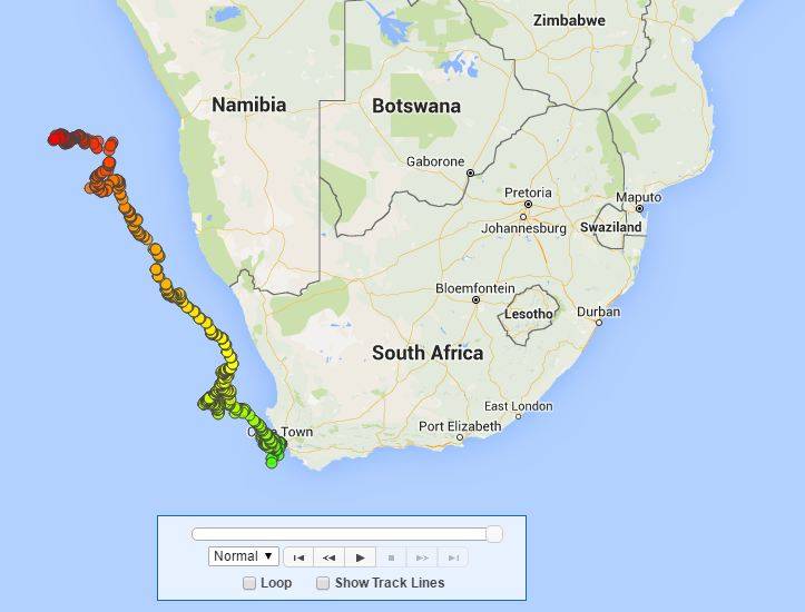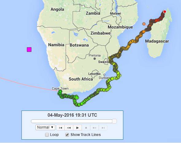 From Cape Point, Otto went east. By February, Otto had just crossed the South African “border” into Mozambican water…