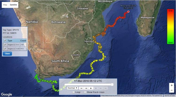Then, in March, her tag data indicated that she was crossing the Mozambican Channel and, by the looks of things, heading to Madagascar.