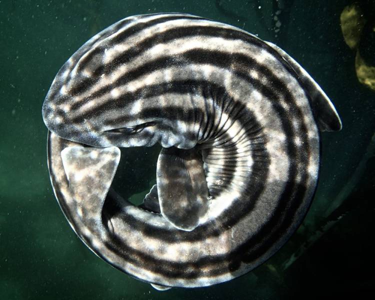 Catsharks are the largest family of sharks, with more than 170 species! These beautifully patterned sharks all feed on bottom-dwelling shellfish and crustaceans, coming out only at night and rarely swimming long distances. They pose no risk to humans, and will usually curl into a ball or hide if they feel threatened, hence their other name – “shyshark.”