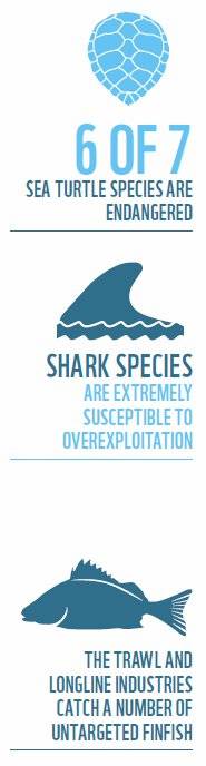 No fishing methods are truly target-specific, and often animals which should never come in contact with the fishing industry, like sea turtles and birds, are accidentally captured and killed. The Food and Agriculture Organization (FAO) of the United Nations estimates that 27-million tonnes of non-target species are captured every year across the world.